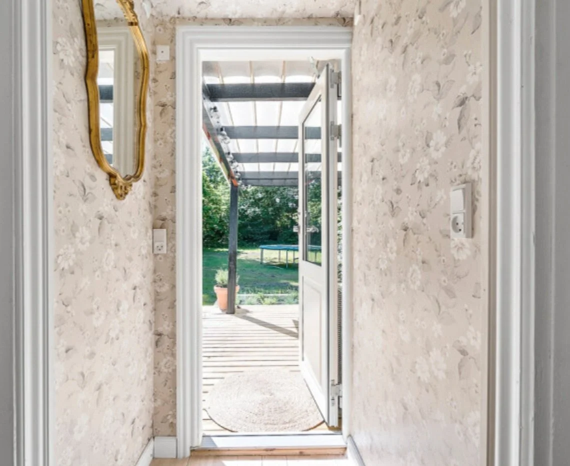Tapeter med sjæl og historie – Et velvalgt tapet kan tilføre sommerhuset en varme og nostalgi, der føles både personlig og tidløs. Klassiske blomstermønstre, diskrete striber eller falmede franske tapeter kan skabe en følelse af sommerhusstemning fra en svunden tid. Forestil dig et soveværelse med sarte, botaniske mønstre på væggene, der giver rummet en blid, indbydende atmosfære – som at træde ind i en sommerdrøm. Eller en lille entré beklædt med et støvet blåt tapet, der straks giver huset karakter og får gæster til at føle sig velkomne fra første skridt.